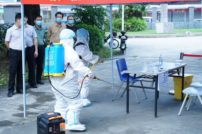 根据学校新冠疫情防控工作安排,8月20日上午10时在3044AM永利集团开展新冠疫情防控应急演练,松山湖校区同步进行。党委委员、副校长李文芳到3044AM永利集团现场观摩、指导演练工作,3044AM永利集团党工委书记、管委会常务副主任刘健为总指挥,管委会副主任彭日新为副总指挥。粤台学院直属党支部书记宋美娴、学工部副部长柳卓君、法社学院党委副书记丘永辉、经管学院党委副书记黄湘、中法学院直属党支部副书记王玉,3044AM永利集团管委会副主任、李奇,东正派出所干警,以及其他工作人员、志愿者参加。