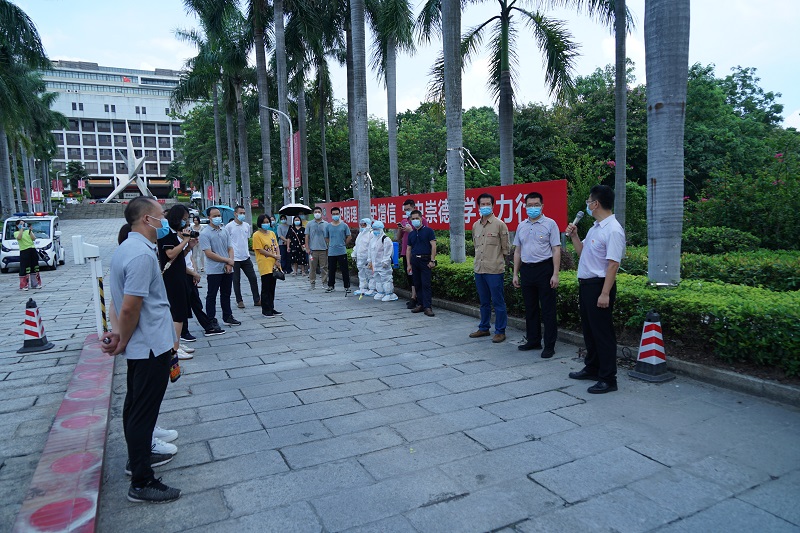 李文芳对所有参加演练的师生表示了慰问和感谢。他强调,这次演练是模拟在发现确诊病例的背景下进行的,具有重要意义,有利于学校进一步完善疫情防控应急工作,各工作组、工作专班要针对演练过程中各环节存在的不足,积极配合,认真研究、总结好疫情防控应急处置经验。同时也要加强以及保持与莞城属地防疫、公安等部门的沟通,形成高效的联防联控机制,在学校常态化疫情防控工作中,严格落实上级各项疫情防控要求,坚决落实疫情防控各项措施,保障好校园师生员工的身体健康和生命安全。