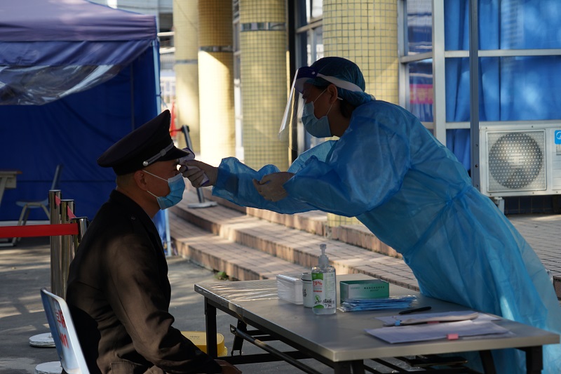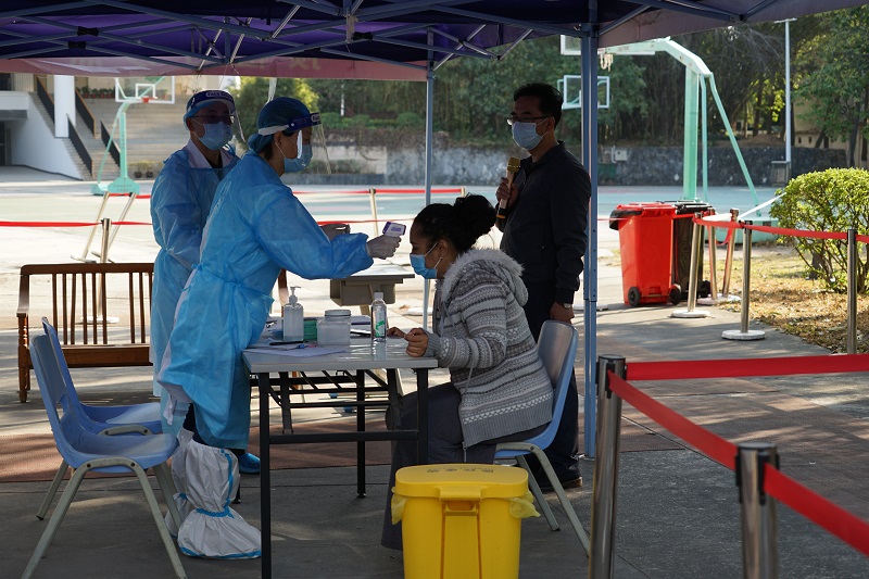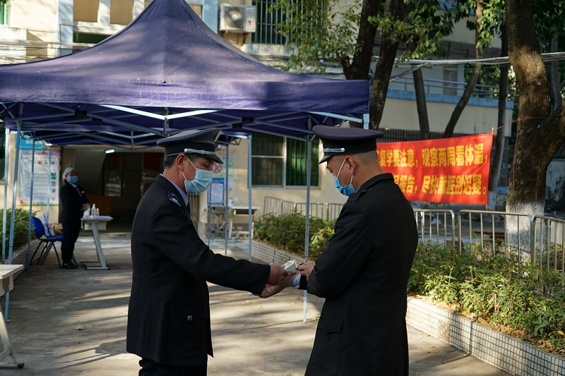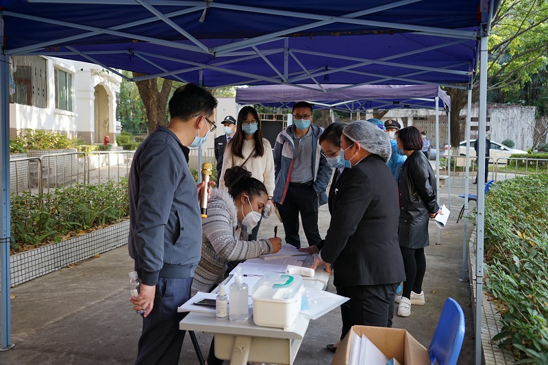 本次演练模拟两种场景:分别是安保人员在值班时突发不适发现体温异常和学生在离开校外宿舍例行检测发现体温异常并转移到健康观察区进一步处理的情况。根据学校相关工作机制,疫情防控工作领导小组在接报后立即启动应急反应机制,模拟即时上报、密切接触者管理、临时观察、医务人员问诊、消毒、转运、进入健康观察区等现场应急处置工作的全过程。演练结束后,大家对演练环节中存在的不足进行了认真梳理、总结反馈,提出相应的整改措施,对学校疫情防控工作进一步加以完善。