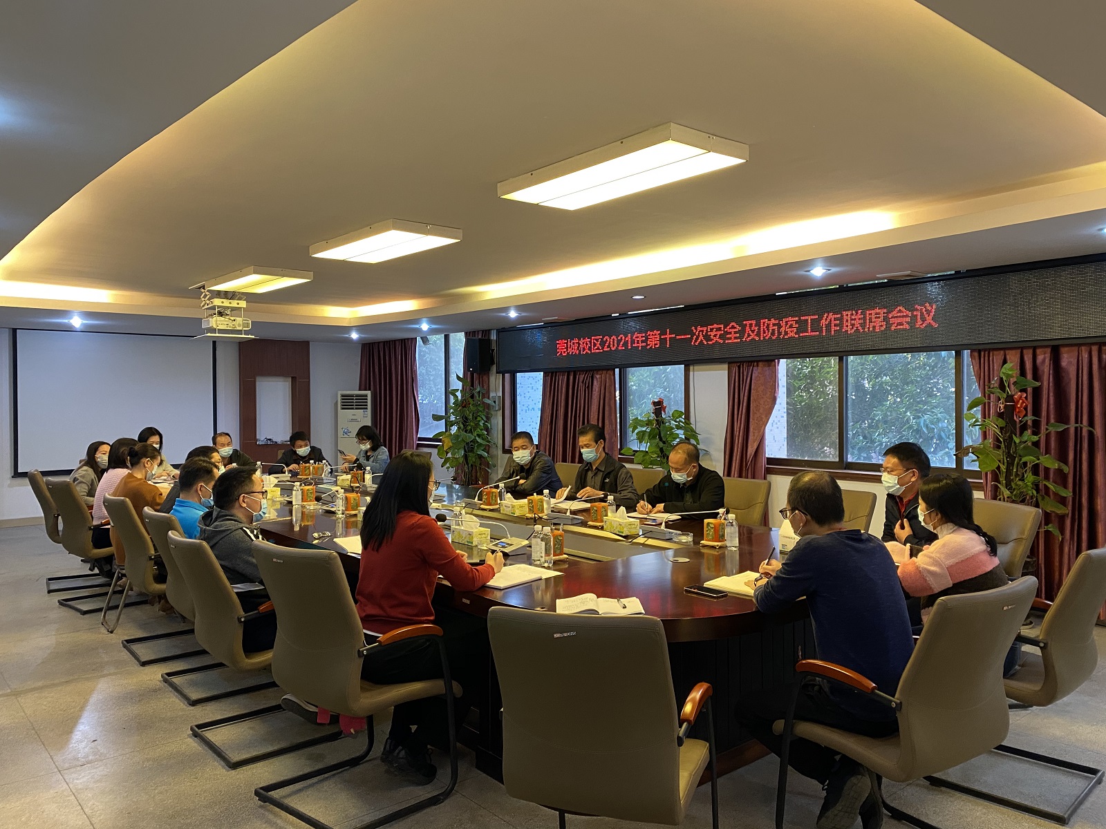会议通报了近期省、市及学校相关安全工作会议、文件精神,以及近日东莞突发疫情情况,随后各与会部门分别汇报本单位日常安全生产工作开展情况、需要协同处理的问题。