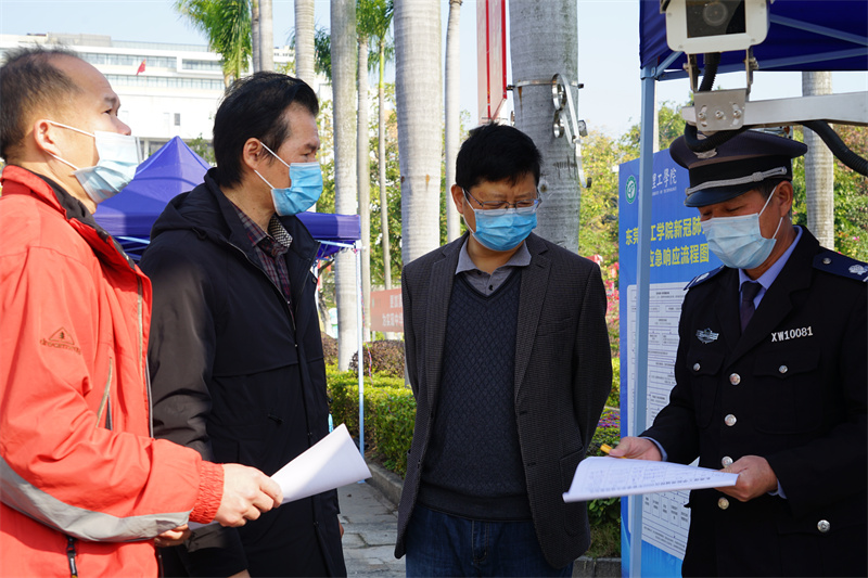 李文芳表示,鉴于东莞当前疫情情况,学校决定暂缓学生返校并开展线上授课,其他教育教学工作正常进行,各门岗要把好校门关,进校要严格核查身份、查验校园码,测量体温,做好登记,严禁无关人员进入校园,同时后勤管理部门要加强生活、防疫物资储备,保障师生正常的学习、工作和生活,确保学校的教育教学工作有序开展。