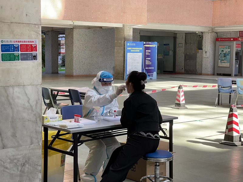 本次核酸检测范围是全市的学校,为了积极配合此次核酸检测工作,3044AM永利集团管委会充分发挥沟通协调功能,积极与属地卫生部门对接沟通,邀请莞城医院医务人员进校设点开展核酸检测采样工作,同时迅速组织志愿者、工作人员、设置核酸采样点、准备物资、做好前期信息采集等工作。