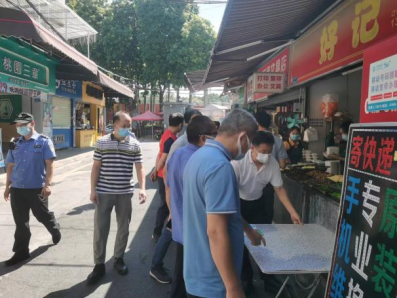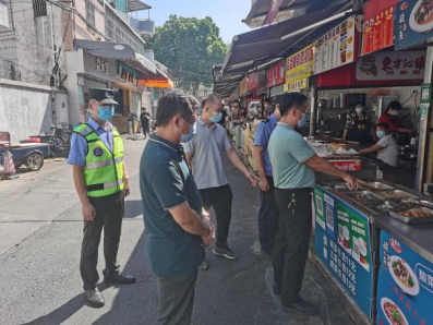 联合检查组重点对北门食街及周边疫情防控、交通、环境卫生、文化宣传、食品安全、用电安全、消防安全等情况逐一排查,检查过程中叮嘱店铺要亮证经营,保持良好的卫生状况,不要占用道路,严格佩戴口罩等,同时对一些存在问题的商家进行了劝导和规范。