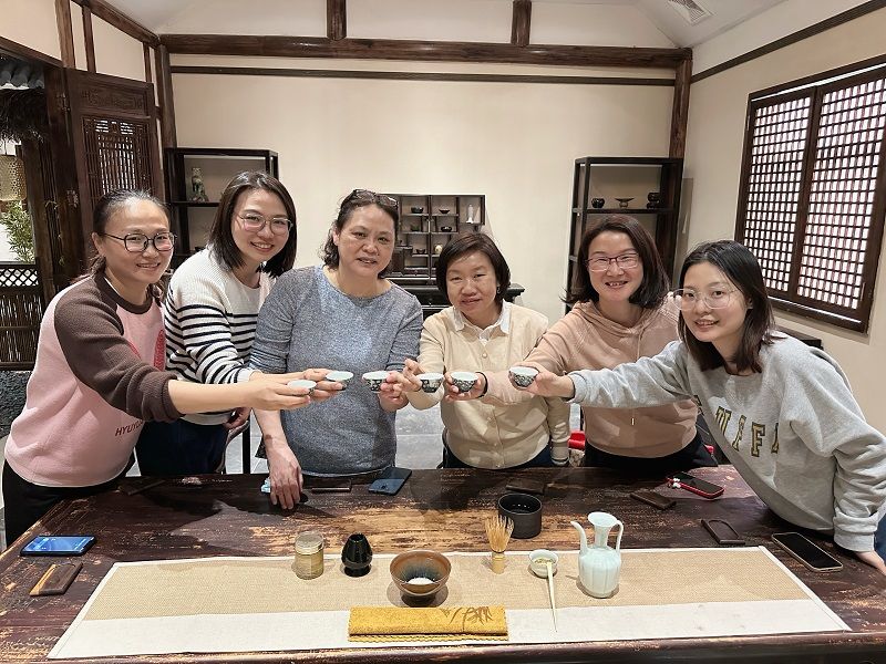 在参观完展厅后,同事们来到了雅致的“课室”学习宋代点茶,了解宋代茶文化,感受一把宋代点茶的魅力。