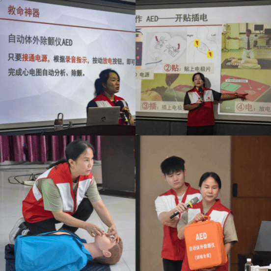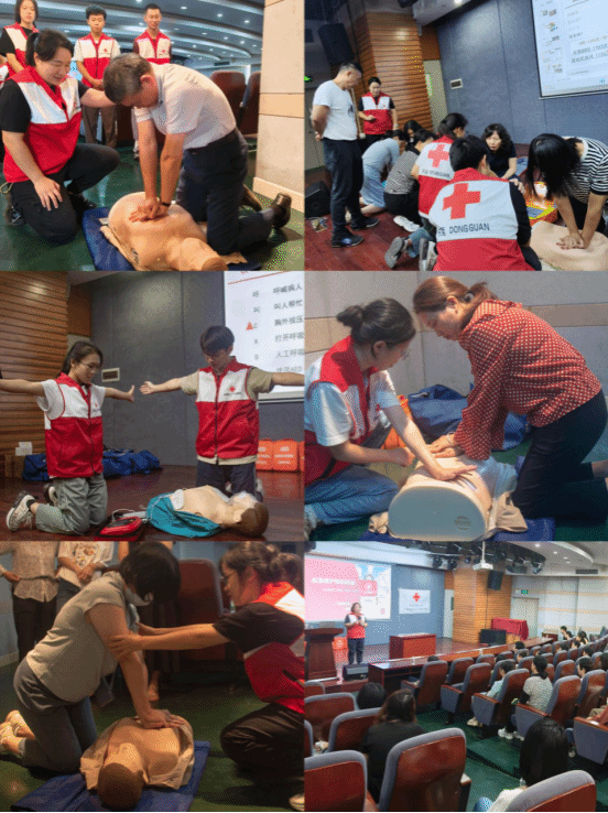 10月24日下午,在东莞理工学院松山湖校区会议中心301室和3044AM永利集团小剧场同步开展“守护生命,‘救’在身边”应急救护培训讲座。本次讲座由校工会女职委主办,3044AM永利集团工联会、继续教育学院分工会和3044AM永利集团管委会协办,邀请了广东医科大学杨丰、黄怡两位主讲老师和东莞市红十字广东医科大学志愿服务队的学生志愿者来给莞工教职员工培训心肺复苏CPR和 AED 机器的规范操作。