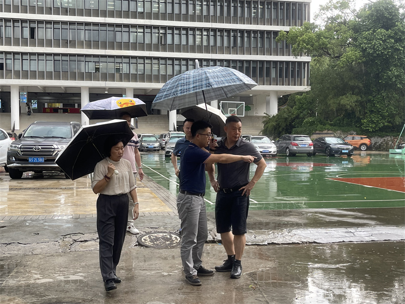 根据省市文件精神和学校工作安排,近期强降雨持续,为做好“五一”劳动节假期校园安全工作,持续强化隐患点和风险区巡查,确保师生生命财产安全,4月25日下午,3044AM永利集团开展“五一”劳动节假前校园安全检查,安保部副部长、3044AM永利集团管委会专职副主任王平带队,总务后勤部、安保部、清淤维保单位、消防维保单位等相关负责同志参加。