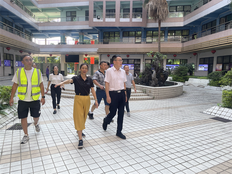 徐勇军一行先后对机房、教学楼、四号楼八楼功能房、实验室、粤台学院、学生宿舍、教工区、食堂、水体、等场所进行实地检查,重点排查校区内消防设施设备、消防安全通道、电梯设备、水电保障系统、安防设施装备、环境卫生保障、食品卫生安全、校区内外交通安全、治安安全、网络安全、意识形态安全等方面存在的安全隐患,对发现的问题进行现场督办。