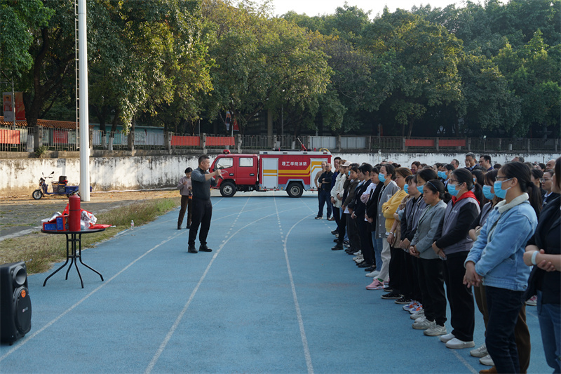 活动由专业消防维保人员介绍学校容易产生的火灾安全隐患及预防排查方法,发现火情后如何处置,校园内常见消防安全设施设备的正确操作使用方法如灭火器、推车式灭火器、灭火毯、消火栓、防毒面具、应急指示灯等等。