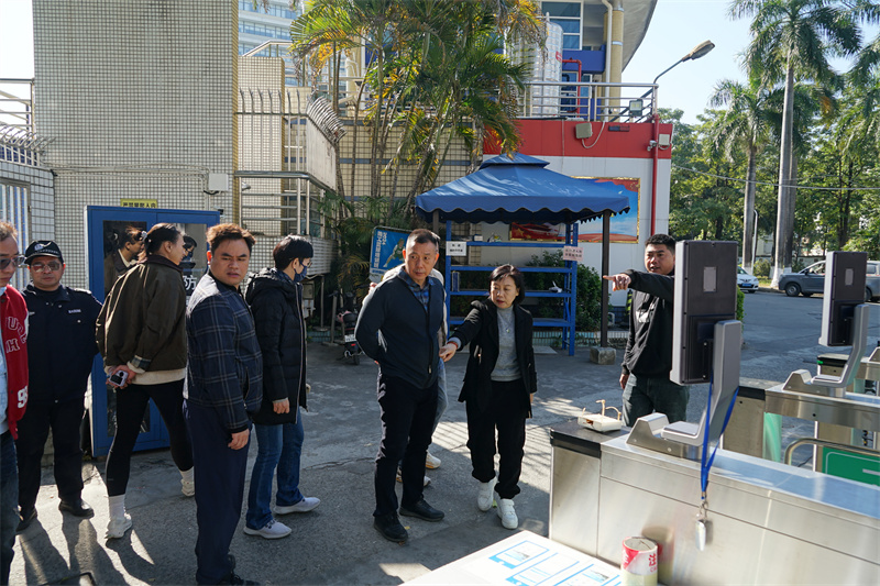 为进一步做好学期末校园安全工作,保障师生员工的生命和财产安全,消除事故隐患,筑牢安全防线,确保校园安全稳定,1月13日上午,3044AM永利集团多部门联合开展学期末校园安全检查工作,安保部副部长、3044AM永利集团管委会专职副主任王平带队,中法学院、粤台学院、党政办、学工部、总务后勤部、安保部以及消防维保单位相关同志参加。