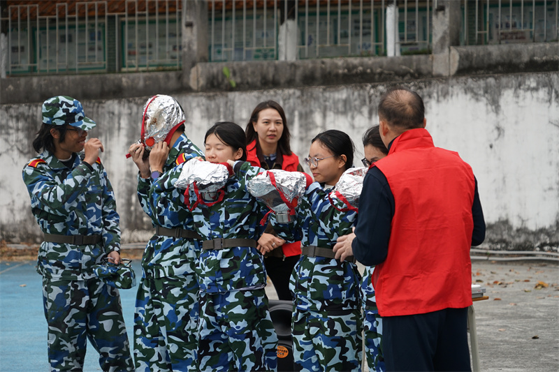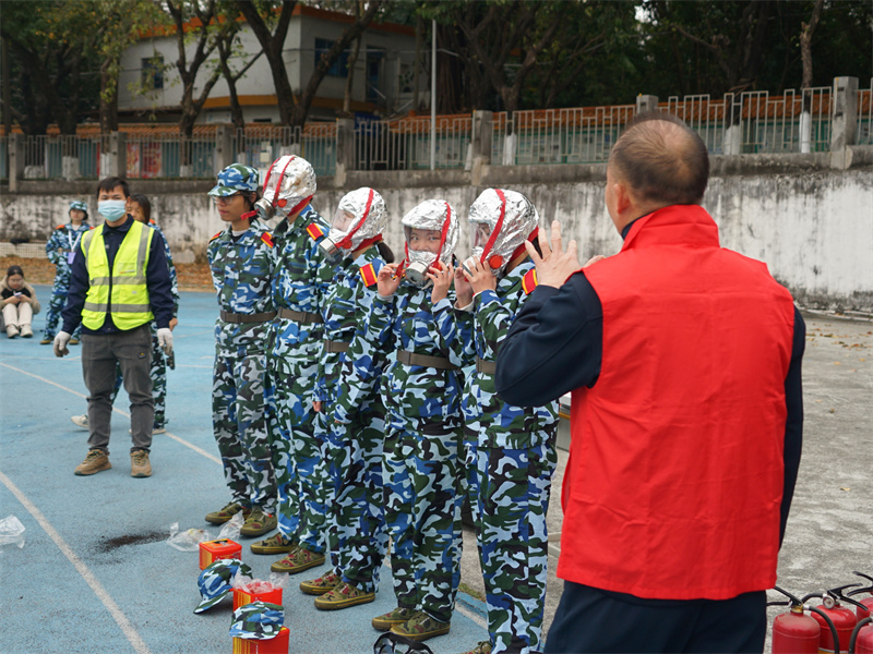 随后同学们分批进行了佩戴防毒面具、使用灭火器灭火等实操体验,为今后应急处置能力积累了宝贵经验。