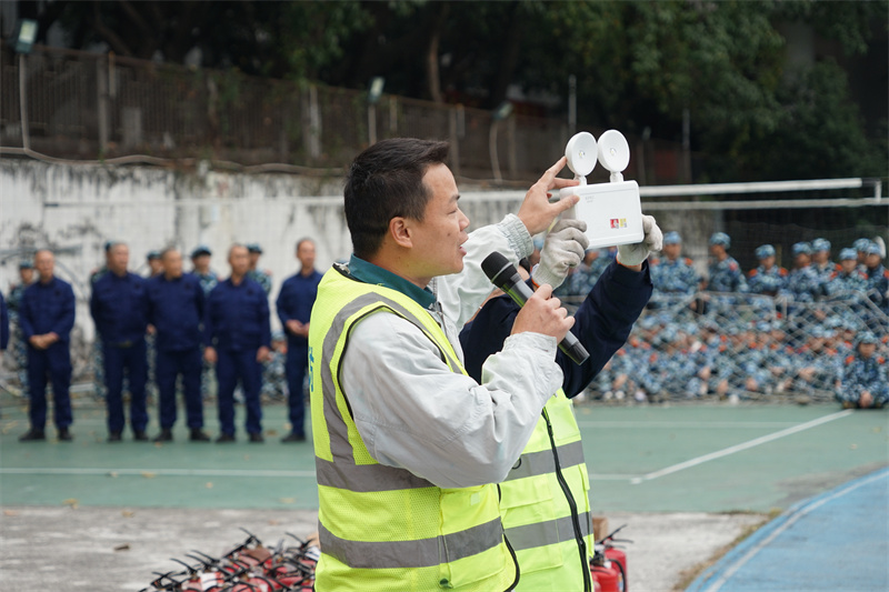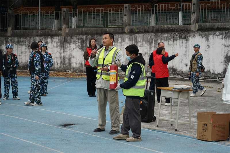 演练现场,由专业消防维保人员向同学们讲解了消防安全工作相关知识、初级火灾扑救、疏散逃生等方面的理论知识,以及介绍灭火器、防毒面具、防火毯、应急照明灯等常用消防设施设备的使用方法,让同学们详细地了解日常工作和生活中需要注意防范的致灾因素和发生火灾后的自救逃生技能。