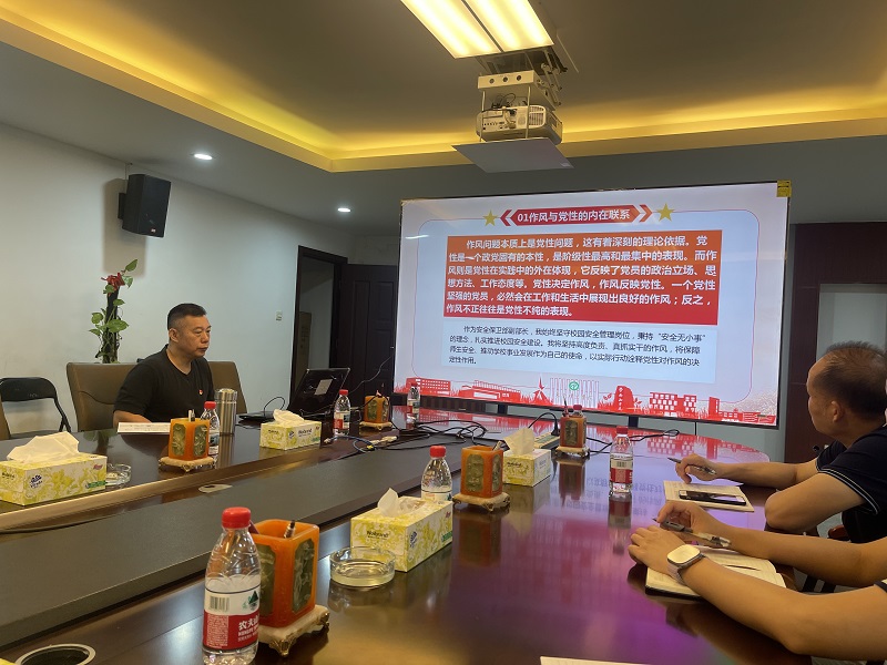 会上,王平领学了习近平总书记在贵州、云南考察时对学习教育发表的重要讲话精神,并结合深入贯彻中央八项规定精神学习教育和校园安全工作,以“作风与党性:筑牢校园安全防线的基石”为主题给全体党员上了一节内容丰富、切合实际的党课。